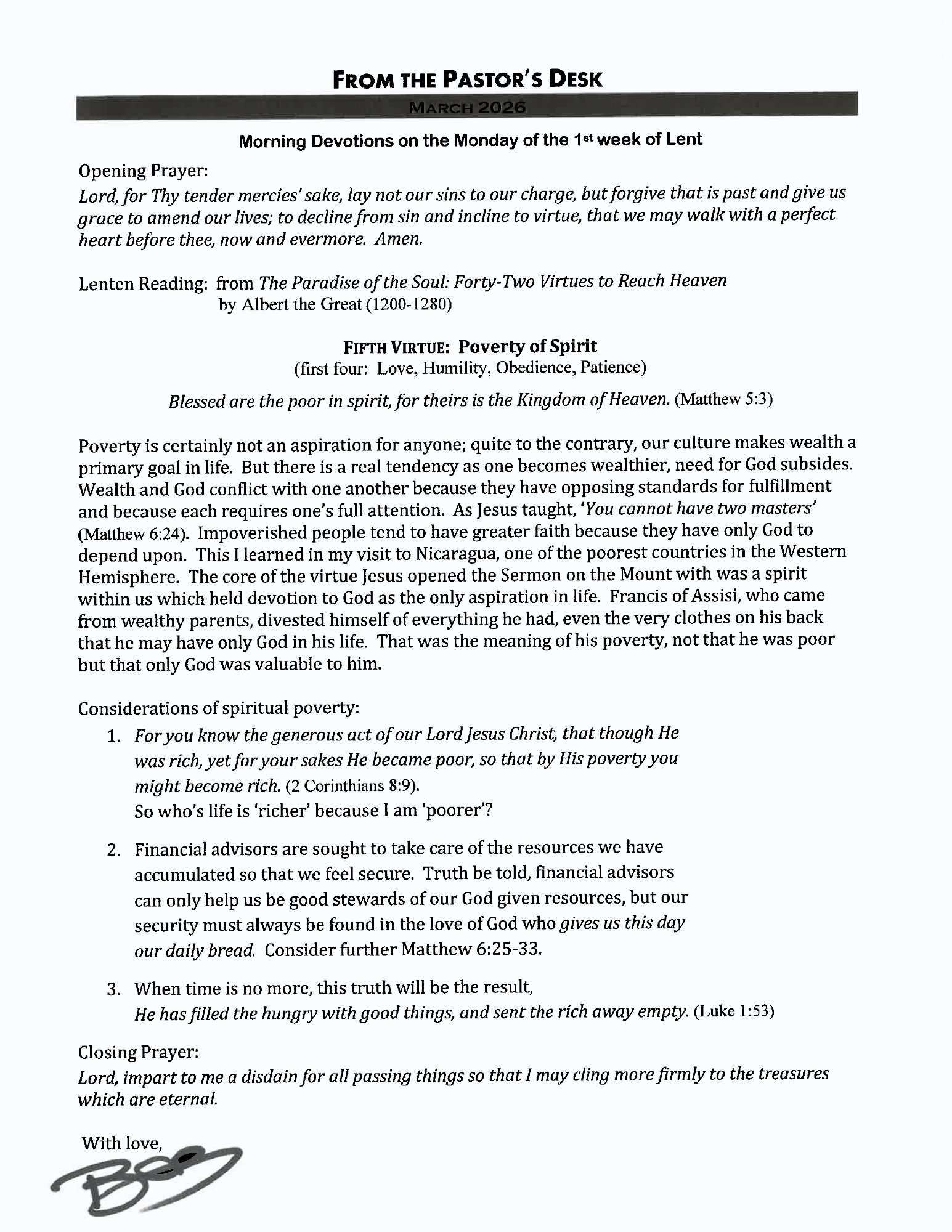 Pastor’s Note