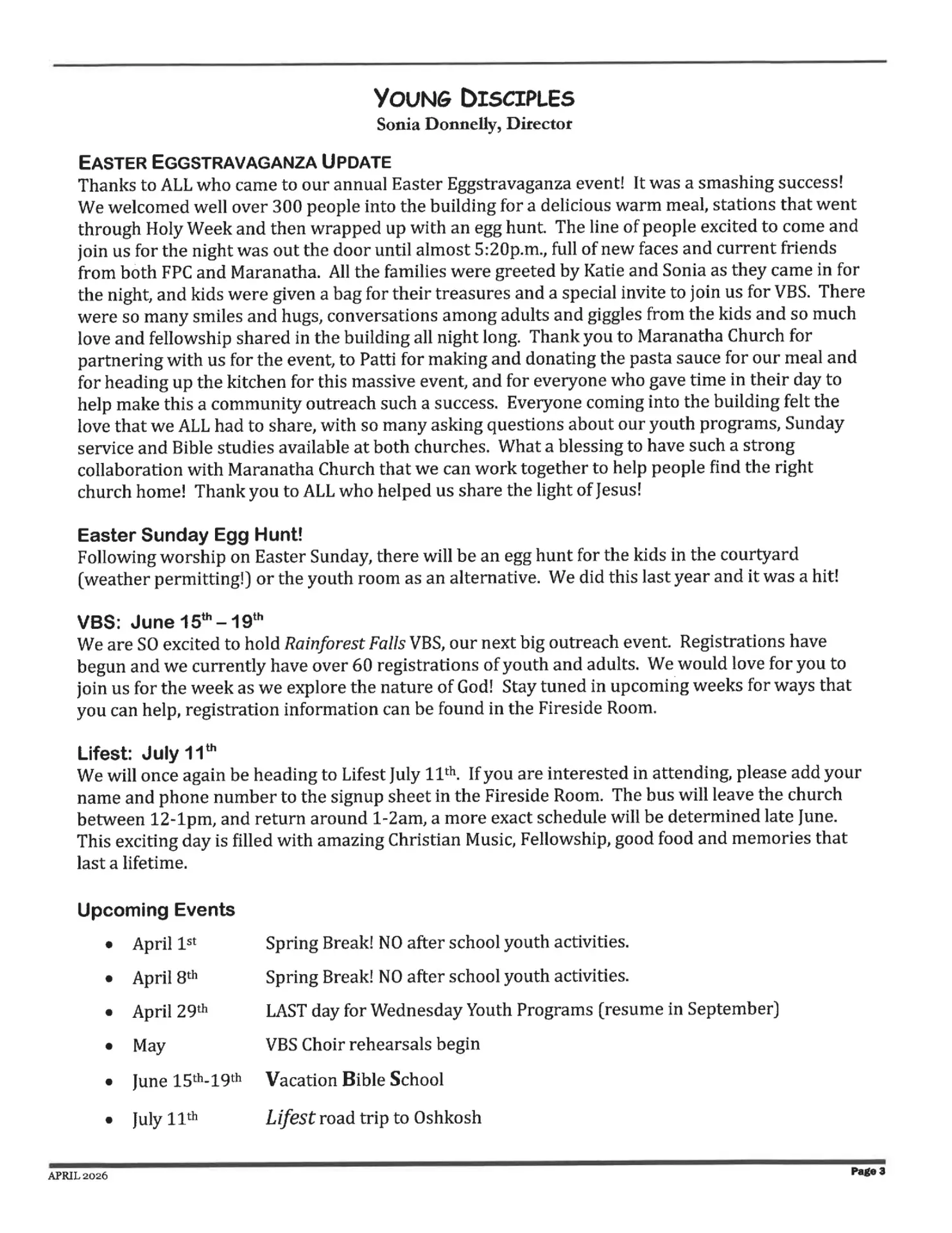 Join us as we begin our youth programs for the school year! All youth Early Kindergarten through High School must be registered to participate, you can register by filling out the form below or by stopping in the church to fill out a form. Programs start September 11th and run Wednesdays through April 29th.
